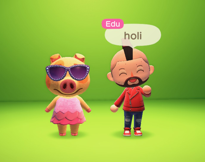 Ya que vi que a la gente le había gustado que usara Animal Crossing, para ayudarme aquí tengo a Mini Edu y a la cerdita Margarí. ¡Saludad chicos!