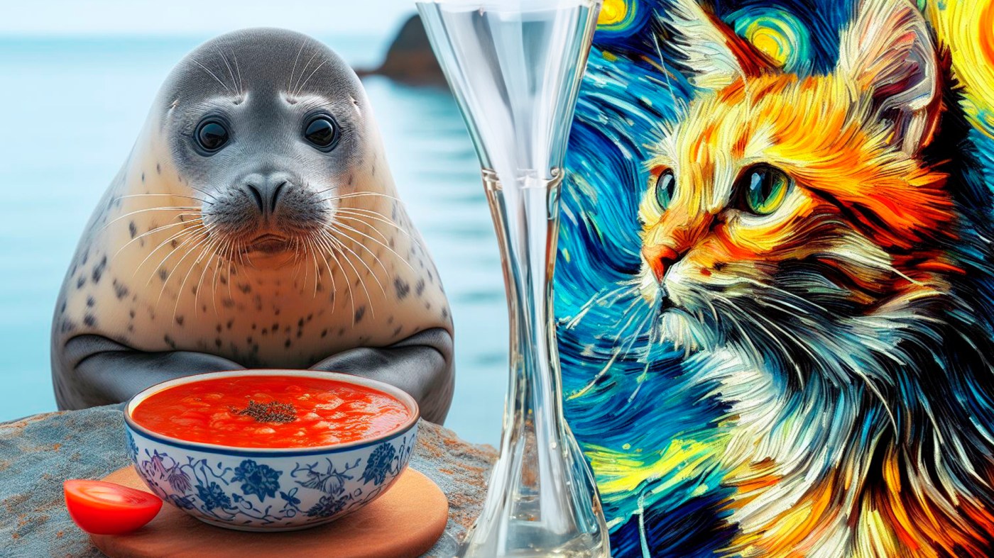 Es fácil entrenar a una inteligencia artificial sobre que es una foca, un gato o incluso algo más concreto sobre qué es un salmorejo. Cogemos varias imágenes que se asocien a cada una de esas palabras y la IA acabará entendiendo en que hay una clara diferencia entre un mamífero marino y un plato andaluz. Ahora, en la segunda imagen hemos ordenado que la imagen tenga el estilo de un artista. Esto es algo que no es algo casual o común, es una orden especifica sobre como una persona en particular se comunica a través de la pintura. El salmorejo, aún siendo un plato cultural del sur de España, es algo que no pertenece a un único individuo. Pero sí sabemos quien era Van Gogh. Su historia, sus vivencias y que el modo de expresarse en sus cuadros era un reflejo de una persona única.
